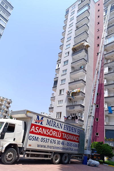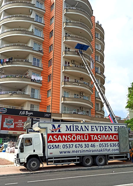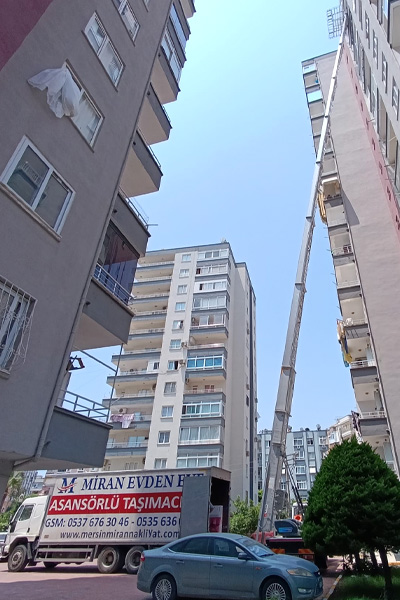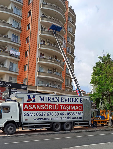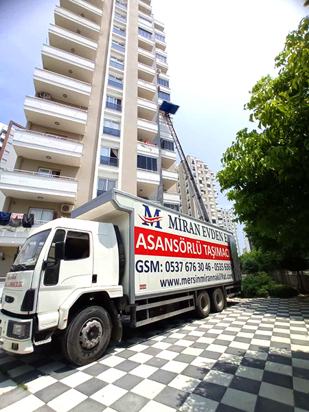 Miran Evden Eve Nakliyat, yüksek katlara daha hızlı ve güvenli bir şekilde eşyalarınızın taşınabilmesi için asansörlü taşıma araçları ile uygun fiyatlı, hızlı ve güvenli taşımacılık hizmeti vermektedir. Asansörlü taşımacılık, binanın dış cephesinden taşıma işleminin yapılacağı dairenin uygun penceresi ya da balkonuna kurularak eşyaların bina sakinlerini rahatsız etmeden daha kısa sürede daha uygun fiyatlara taşınmasıdır. Miran asansörlü taşımacılık firması olarak, yüksek girişli katlara, içerisi dar olan binalara ve taşıma işinini zor olacağı yerlere özellikle kurduğumuz asansörlü taşıma araçlarımız ile çok daha hızlı ve güvenli bir şekilde taşıma işlemi gerçekleştiriyoruz.